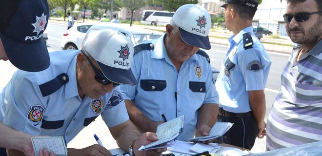 Erkilet yolunda, emniyet kemeri denetimi yapan trafik polisleri, trafikte seyir halindeyken emniyet kemeri takmayan sürücülere 77 TL ceza kesti.