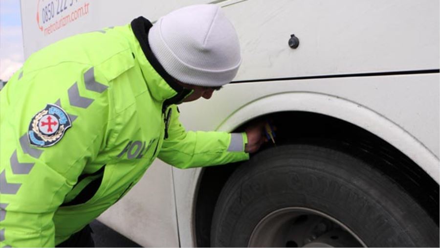 Kayseri'de trafik polisleri tarafından yolcu otobüslerine yönelik yapılan uygulamada, yolculara emniyet kemeri hakkında bilgilendirici broşürler dağıtılırken, otobüslerinde lastiklerinde denetim yapıldı.