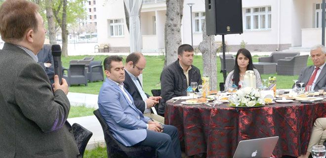 Rektör Sabuncuoğlu ve AGÜ akademisyenleri, Sümer Kampüsü’nde düzenlenen kahvaltılı toplantıda, dershane ve okulların yöneticileri ve rehber öğretmenleri ile bir araya geldi.