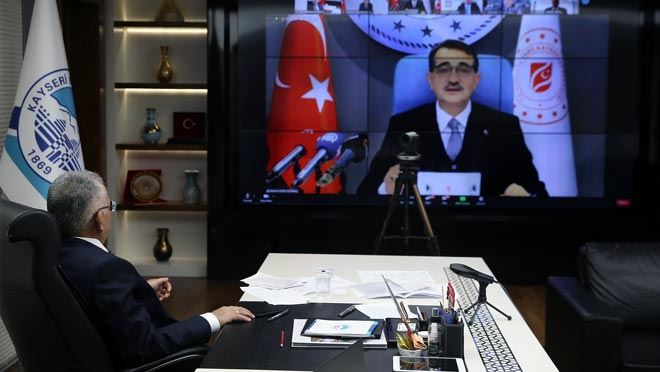 Enerji ve Tabii Kaynaklar Bakanlığı ile Türkiye Belediyeler Birliği işbirliğinde ‘Belediyelerde Yenilebilir ve Akıllı Enerji Uygulamaları’ toplantısı video konferans yöntemiyle yapıldı. Enerji ve Tabii Kaynaklar Bakanı Fatih Dönmez başkanlığında yapılan toplantıya Başkan Büyükkılıç’ın yanı sıra Türkiye Belediyeler Birliği Başkanı ve Gaziantep Büyükşehir Belediye Başkanı Fatma Şahin, Denizli Büyükşehir Belediye Başkanı ve Enerji Kentler Birliği Başkanı Osman Zolan, Kocaeli Büyükşehir Belediye Başkanı Doç. Dr. Tahir Büyükakın, Ordu Büyükşehir Belediye Başkanı Dr. Mehmet Hilmi Güler, Bursa Büyükşehir Belediye Başkanı Alinur Aktaş, Balıkesir Büyükşehir Belediye Başkanı Yücel Yılmaz, Şanlıurfa Belediye Başkanı Zeynel Abidin Beyazgül ve diğer ilgililer katıldı.