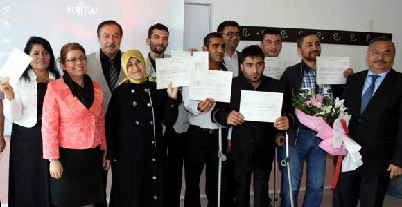 İş-Kur tarafından desteklenen Kayseri Bedensel Engelliler Derneği tarafından verilen bilgisayar bakım ve onarım kursu sona erdi. Kursun bitmesinin ardından sertifikalarını alan engelli kursiyerler sertifika alma sevinci yaşadı.