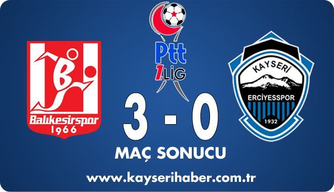 Erciyesspor, PTT 1.Lig´in 28.hafta karşılaşmasında Balıkesir´e konuk oldu. Zorlu mücadele, Balıkesirspor´un 3-0´lık üstünlüğü ile son buldu ve Erciyesspor iki basamak gerileyerek 17.sıraya düştü.
