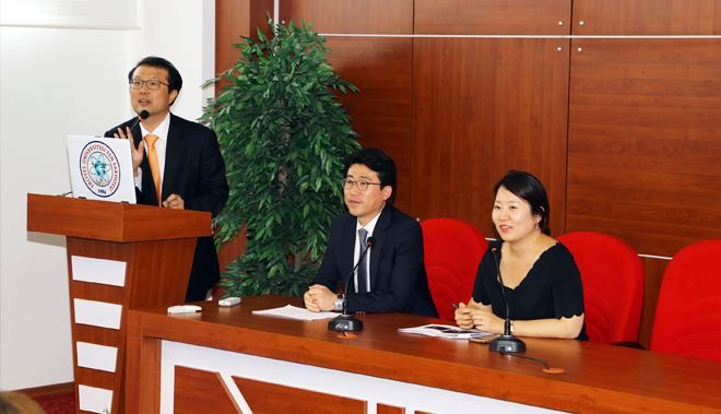 Fen Fakültesi Konferans Salonu´nda düzenlenen seminere Kore Cumhuriyeti Büyükelçilik Müsteşarı Jijoon Kim, Erciyes Üniversitesi Doğu Dilleri ve Edebiyatları Bölüm Başkanı Prof. Dr. Göksel Türközü´nün yanı sıra çok sayıda akademisyen ve öğrenci katıldı.