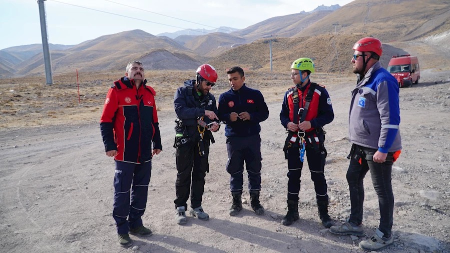 Kayseri Büyükşehir Belediyesi İtfaiye Daire Başkanlığı ve Erciyes AŞ işbirliğinde personele halatla kurtarma eğitimi verildi.