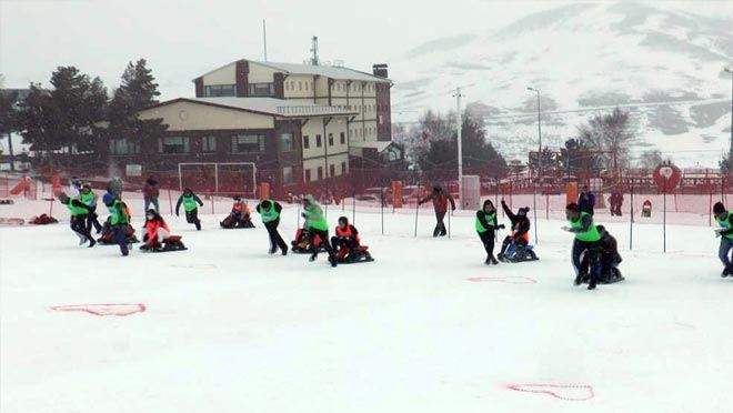 Erciyes Kayak Merkezi'nde bu yıl 4.kez gerçekleştirilen 'Artık Çekilmez Oldun Kızak Yarışması" yarışmacılara ve izleyenlere eğlenceli dakikalar yaşattı.