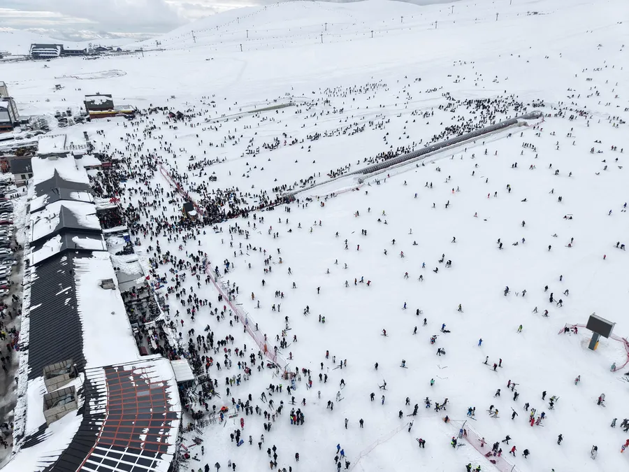 Öte yandan Erciyes Kayak Merkezi'nde oluşan yoğunluk dron ile görüntülendi.