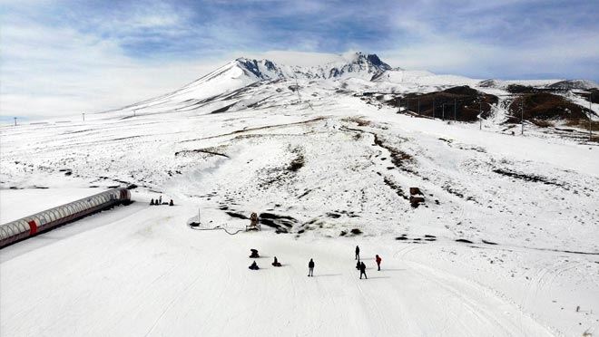 Sokağa çıkma kısıtlamasının 4. haftasında Türkiye'nin önemli kış turizmi merkezlerinden Erciyes Kayak Merkezi sakin bir hafta sonu geçiriyor. Erciyes’in sakinliğinden yararlanan turistler ise kayak yaparak eğlenceli anlar geçirdi. Daha önce Erciyes’i hiç bu kadar sakin görmediklerini söyleyen Alexandra Erciyes’in çok güzel bir yer olduğunu ve herkesin buraya gelerek kayak yapmalarını tavsiye etti. Alexandra, “Erciyes çok güzel bir yer. Antalya’dan biliyoruz. Orası hep yaz ve sıcak. Çok güzel bir yer herkese tavsiye ediyorum. Erciyes daha önce gittiğim kayak merkezlerinden daha güzel bir kayak merkezi” ifadelerini kullandı. Çok uzun bir yoldan geldiği ve buna rağmen çok memnun kaldığını söyleyen Petr ise “Vladivostok’tan geldim. Çok uzak bir yerden geldim. Uçakla 10 saatlik bir mesafeden geldim. Çok memnun kaldım. Kapadokya’yı gördüm ve Erciyes’i gördüm. Çok memnunum. Kalabalık olmadığı için çok memnunum ve herkese tavsiye ediyorum” dedi. Biraz sakin de olsa yabancı misafirlerinin aktivitelerini rahatlıkla gerçekleştirdiğini söyleyen Aziz Acar ise “Nevşehir Kapadokya bölgesinde rehberlik yapıyorum. Birkaç haftadır özellikle Rus gruplar ile Erciyes tur planı yapmaktaydık. Yalnız hafta sonuna denk geldiği için birazcık sakinlik mevcut. Bir program ayarlayıp Erciyes’e geldik. Biraz sakinde olsa bizim yapabileceğimiz aktiviteleri kullanabileceğimiz alanlar mevcut. Bu alanlarda yerli, yabancı misafirlerimiz rahatlıkla aktivitelerini yapabiliyorlar, eğlenebiliyorlar. Ben daha önce Erciyes’e geldim. Bize yakın bir bölge olduğu için gruplarla devamlı geliyorduk ama pandemi döneminde çok fazla tur olmadığı için gelemedik. Bu sakinlik bizim içinde biraz değişik oldu. Çok fazla durumdan şikayetçi değiliz. Misafirlerde hoş karşıladı. Tabi ki sağlık daha önce geliyor. Bu nedenle herhangi bir sıkıntı yaşamadık. Umarım daha da iyi olur" diye konuştu.