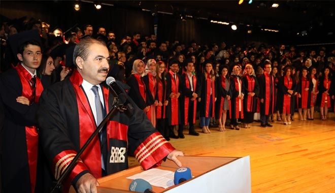 Rektör Yardımcısı ve Hukuk Fakültesi Dekanı Prof. Dr. Murat Doğan törende yaptığı konuşmada genç hukukçulara bundan sonraki hayatlarında başarılar dileyerek ?Mezuniyet törenleri bizler için çok özel günlerdir. Çünkü bugün öğrencilerimizin meyvesini alıyoruz. Siz aileler de çocuklarınızla birlikte sevinip, onlarla birlikte üzüldünüz. Onlar sınava girerken siz de onlarla heyecanlandınız. Bundan dolayı bugün onlarla birlikte heyecanlanmak ve sevinmek sizin en büyük hakkınız. Ben bunca yıl çocuklarınız için göstermiş olduğunuz fedakârlıklar için sizleri tebrik ediyorum. Bizim fakültemiz genç bir fakülte. Bir insanın reşit olması için 18 yıla ihtiyacı vardır. Fakat bu süre kurumlarda daha erken veya daha geç olabilir. Biz çok iddialı değiliz ama iddialıyız. İyi yolda ilerliyoruz. Sevgili öğrenciler sizleri bundan sonraki meslek hayatınıza uğurluyoruz. Biz burada size sadece pozitif hukuk kurallarını anlatmadık. Özellikle sizlerden adil, dürüst ve çalışkan olmanızı istedik. Eğer hayatınızı bu şekilde devam ettirirseniz hayatınızda mutlu, mesleğinizde başarılı olursunuz. Sizlerden beklentimiz hukukçu olarak mesleğinizi yaparken bağımsızlığınızdan taviz vermeyin ve dik durun? değerlendirmesinde bulundu?