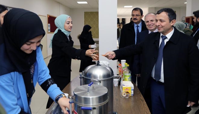 İlahiyat Fakültesi giriş katında düzenlenen ve gıda içecekten oluşan kermesi gezen Rektör Çalış, alış veriş yaparak kermese destek verdi.