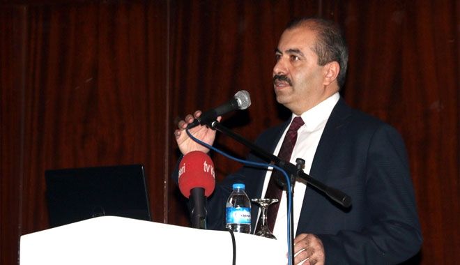 Seminerin sonunda ERREM Müdürü Öğr. Gör. Mustafa Atak, Rektör Yardımcısı Prof. Dr. Murat Doğan´a plaket takdim etti.