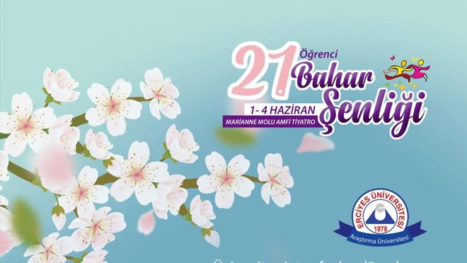 Erciyes Üniversitesi (ERÜ) “21. Bahar Şenliği”, 1-4 Haziran 2022 tarihleri arasında düzenlenecek. 4 gün boyunca ünlü sanatçıların sahne alacağı şenliğe 1 Haziran saat 12:00’de protokol konuşmaları ve geleneksel şenlik pilavı ikramı ile start verilecek.