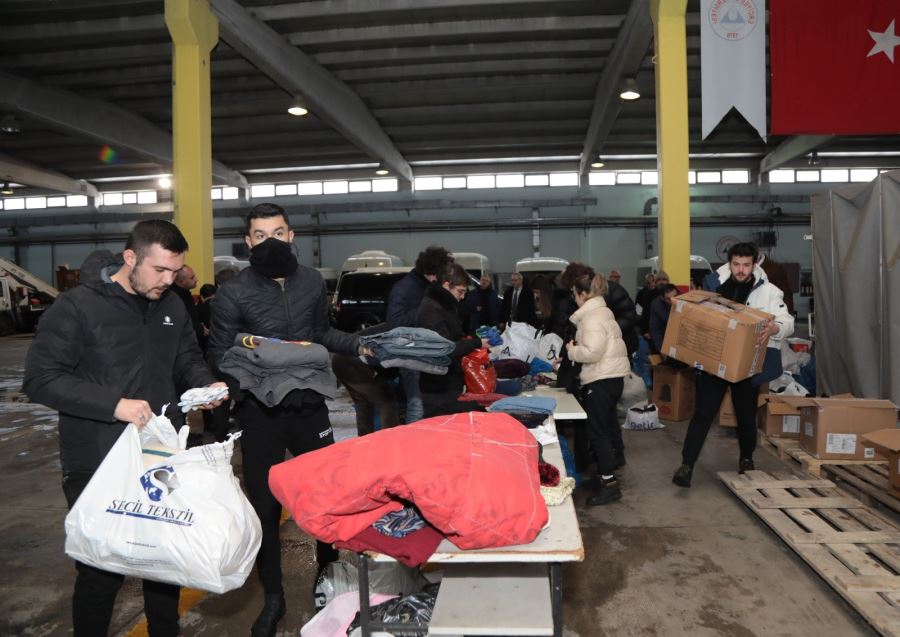 Yardım kampanyası çerçevesinde toplanan iklime uygun kullanılmamış mont, bot, yağmurluk, uyku tulumu, mat, çorap, atkı, bere, eldiven gibi kıyafetler ve battaniye, hijyen malzemeleri, bebek bezi, gıda malzemeleri, çocuk maması, ışıldak ve oyuncak gibi yardım malzemeleri ekipler tarafından tek tek kolilenerek, deprem bölgesine sevkiyata hazırlandı.