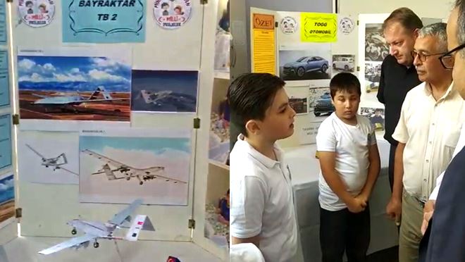 Minik yüreklerin maharetli ellerinden çıkan maket uçak, siha, projeler ise herkesten tam not aldı.