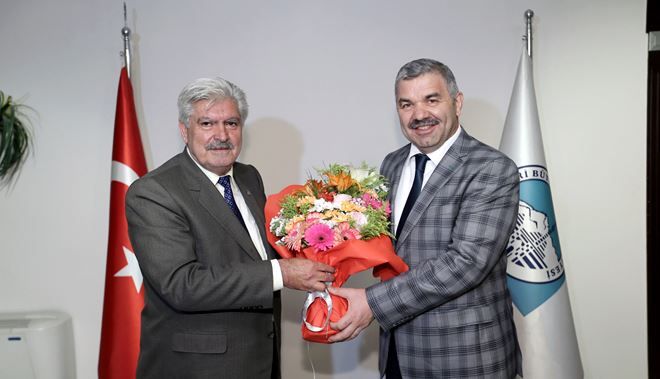 Esnaf Sanatkarlar Odaları Birliği Başkanı Ahmet Övüç ve birliğe bağlı odaların başkanları Büyükşehir Belediye Başkanı Mustafa Çelik´e teşekkür ziyaretinde bulundu. Birlik Başkanı Övüç, ziyarette Başkan Çelik´e çiçek takdim etti.