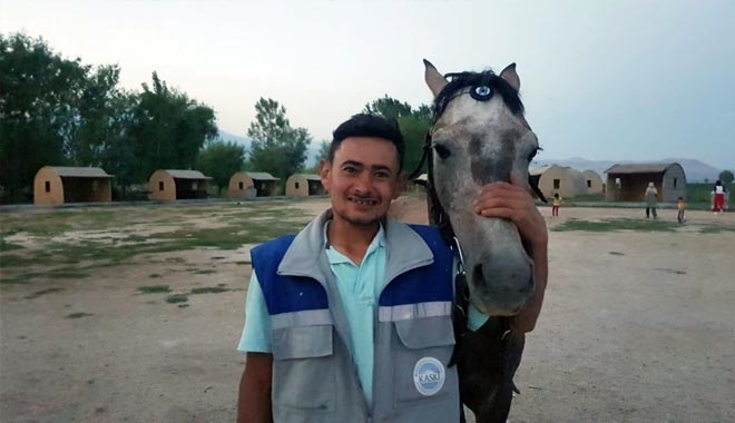 Kayseri´nin Develi ilçesine bağlı Sindelhöyük mahallesinde bulunan Sultan Sazlığı mesire alanında görevli olan Barış Aladağ´ın evcilleştirilen yılkı atı ile arasındaki bağ görenleri şaşırtıyor. Gün içerisinde at ile birlikte zaman geçirdiğini ifade eden Aladağ, "Burada zamanımızın büyük bir çoğunluğunu hayvanlarla iç içe geçiriyoruz. Bu süre zarfında da yılkı atı ile arkadaş oldum. Gün içinde onunla ilgileniyorum ve araziyi onunla birlikte geçiriyorum" dedi.