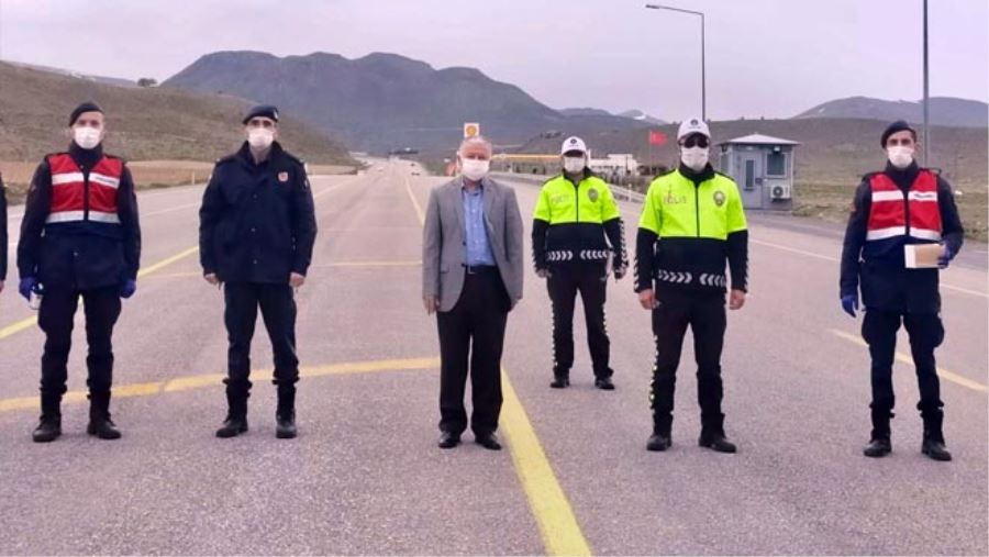 Develi Kaymakamı Murat Duru, ilçe girişindeki jandarma ve polis uygulama noktasında görev yapan güvenlik güçlerini ziyaret etti. Kaymakam Duru, uygulamada sürücülere de uyarılarda bulunarak, "Trafik kuralları aklımızda olmakla birlikte gelecek güzel günler için evde kalmaya devam edelim" dedi.