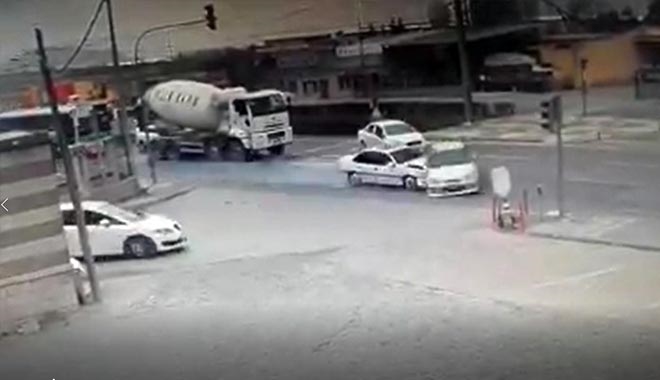 Bir iş yerinin güvenlik kamerasına yansıyan kazada kırmızı ışığın yanmasıyla duran otomobil, yeliş ışığın yanmasının ardından sağa dönmeye çalışıyor. En sağ şeritten hızlıca gelen diğer otomobil ise manevra yapan otomobile çarpıyor. Kaza sonrasında ise diğer şoförler yardıma koşuyor.