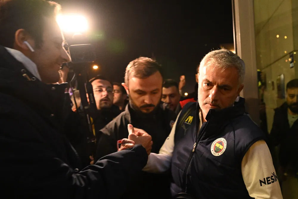 Teknik direktör Jose Mourinho ve oyuncu İrfan Can Kahveci, otel önünde takımlarını destekleyen taraftarlarla fotoğraf çektirdi, formalarını imzaladı.