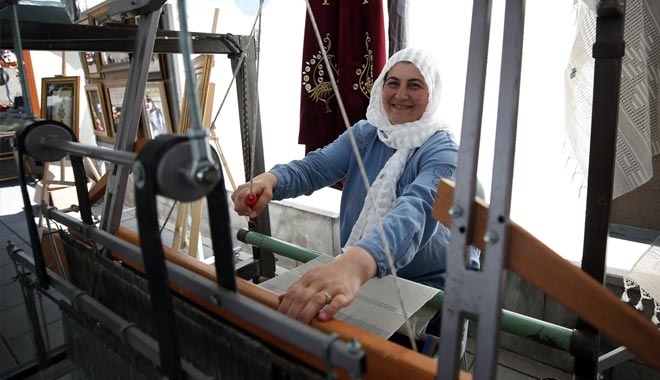 Çocukluğunda anneannesinden görüp öğrendiği feretiko dokumacılığını mesleği haline getiren Emine Kanberoğlu, 29 yıldır tezgahında şekillenen el emeği göz nuru ürünlerle geçimini sağlıyor.