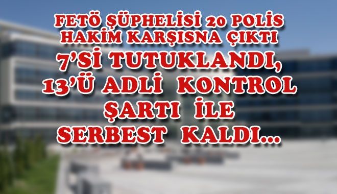 FETÖ/PDY soruşturmasında gözaltına alınan 20 polis memuru Emniyetteki işlemlerinin tamamlanmasının ardından sağlık kontrolünden geçirildikten sonra hakim karşında hesap verdi? 7 polis tutuklanırken , 13 polis adli kontrol şartı ile serbest kaldı?