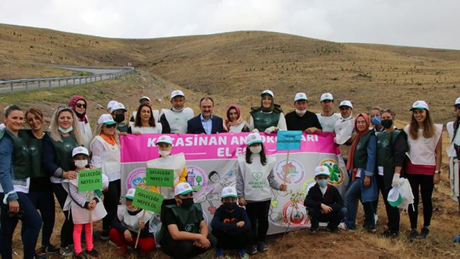Kayseri'de öğretmenler, Kocasinan İlçe Milli Eğitim Müdürlüğü tarafından koordine edilen 'Geleceğe Nefes Ol' Projesi kapsamında 100 fidan dikti.
