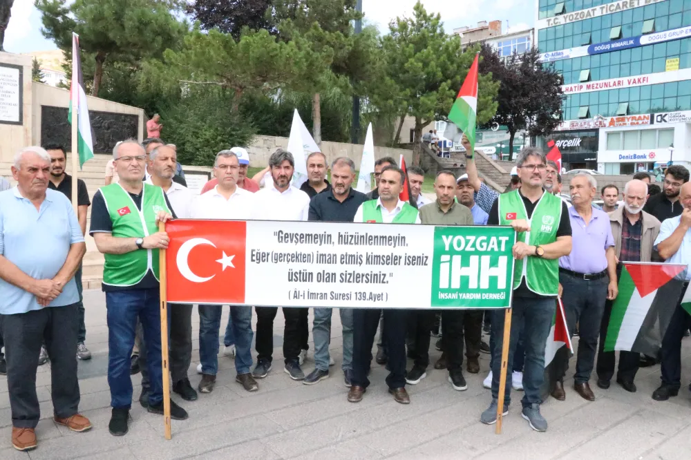 Grup adına açıklama yapan İnsan Hak ve Hürriyetleri (İHH) İnsani Yardım Derneği Yozgat İl Temsilcisi Fatih İzci, insanlığın bağrından gelen bir vicdanın sesi olmak için meydanda toplandıklarını söyledi.
