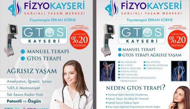 Kayseri ilimizde yeni açılan ?FizyoKayseriSağlıklı Yaşam Merkezi?nde manuel terapi yönteminin yanında Gtos cihazı ile ağrısız yaşama ilişkin uygulamalar yapılarak bilgiler paylaşılmaktadır. Gtosterapi, özellikle bel ve boyun ağrılarının hafifletilmesinde ve eklem ağrılarına bağlı sorunların çözümünde kullanılan manuel terapi yöntemlerinden birisidir. Bu yöntem;ağrılarından kurtulmak isteyen bel ve boyun fıtığı olanlarıın, klasik yöntemlerle sonuç alamayanların veameliyat için uygun olmayanların başvurduğu alternatif bir yöntemdir. FizyoKayseri´ye başvuranların bu yöntem sayesinde deneyimli fizyoterapist Erkan Kürne eşliğinde bel, boyun fıtığı ve eklem ağrıları hafifletilerek, yaşam kalitesi artırılarak ağrısız yaşama geçişi sağlanmaya çalışılacaktır.