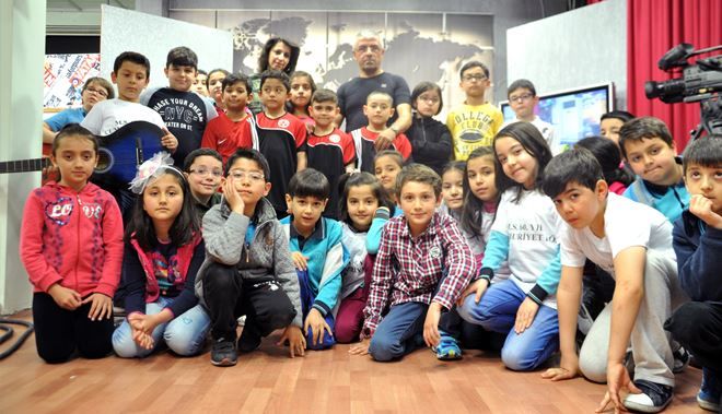 Beden Eğitimi öğretmenleri Tahsin Ayhan refakatinde yayın merkezimizi ziyaret eden Mehmet Sepici 60.Yıl Cumhuriyet İlkokulunun genç yürekleri televizyon, radyo ve gazete yayıncılığının nasıl yapıldığı konusunda ağabeylerinden bilgi aldılar?