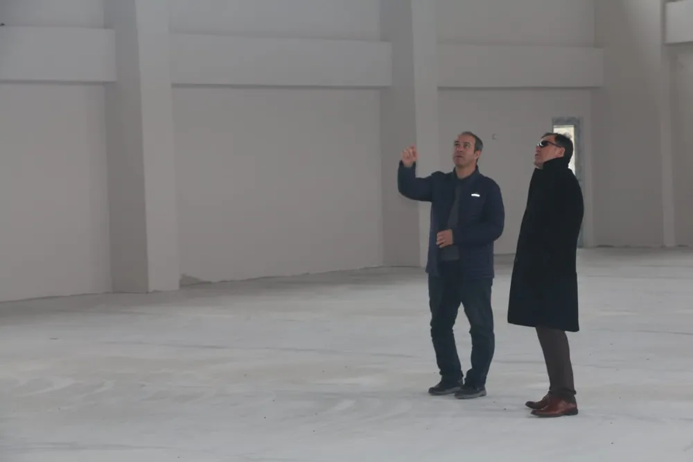 Kayseri Gençlik ve Spor İl Müdürü Ali İhsan Kabakcı, Mart ayında teslim edilecek olan Sarıoğlan Spor Salonu'nda incelemelerde bulundu.