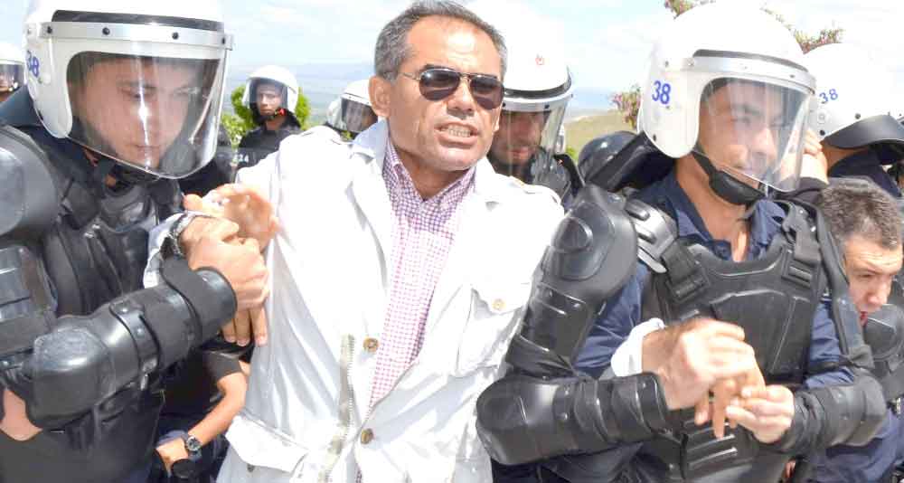 gözaltına alınırken, basın mensuplarına biber gazından etkilenmemeleri için gaz