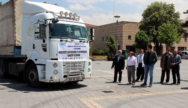 Uğurlama töreninde konuşan Kayseri Gönüllü Kültür Kuruluşları Platformu Sözcüsü ve Mazlumder Kayseri Şube başkanı Ahmet Taş, Güneydoğu´da başlatılan operasyonların ardından bölgeden göç ederek güvenli bölgelerde yaşayan vatandaşların zor şartlar altında hayatta kalma savaşı verdiklerini vurgulayarak şunları kaydetti? "Ülkemizin Güneydoğu Bölgesi´nde Temmuz 2015´ten beri yaşanan PKK saldırıları sonucu başlatılan operasyonlar sırasında çok sayıda bölge insanı bulundukları yerleri terk ederek, saldırıların ve çatışmaların yaşanmadığı güvenli bölgelere göç ettiler. Çatışmalardan kaçan 10 bin terör mağduru çatışmaların yaşanmadığı Mardin Kızıltepe´ye sığınmış olup zor şartlar altında hayatta kalmanın mücadelesini veriyorlar. Kızıltepe Kardeşlik ve Dayanışma Platformu Kayseri´mizden yardım talep ederek şehirlerine sığınan mağdur ve mazlumların imdadına yetişmemizi talep etmişlerdir. Kayseri Gönüllü Kültür Kuruluşları Platformu´na bağlı Diyanet-Sen, Hizmet-İş Sendikası, Mazlum-Der, Bem-Bir-Sen, Miraç Kültür Merkezi, Darülaceze Vakfı, Çelik-İş Sendikası, Eğitim-Bir-Sen Kayseri Şubesi ve Hilal-Der öncülüğünde başlatılan, Melikgazi Belediyesi ve İHH Kayseri Yardım Derneği´mizin de katkılarıyla hazırlanan, içinde temel gıda maddeleri, giysi, yatak, kanepe ve patatesten oluşan yardım malzemelerinin bulunduğu yardım TIR´ımızın üçüncüsünü Kızıltepe´ye gönderiyoruz"