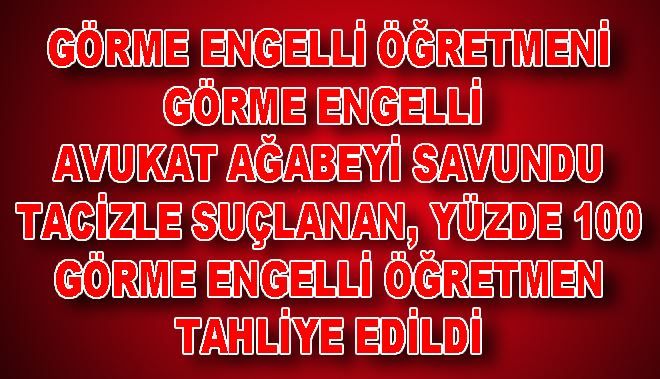 Kayseri´de 5 öğrenciye cinsel tacizde bulunduğu iddiasıyla 2 ay önce tutuklanan ve bu suçtan 2. Ağır Ceza Mahkemesi´nde yargılanan görme engelli sosyal bilgiler öğretmeni M.B. tahliye oldu. Görme engelli öğretmeni, kendisi gibi görme engelli olan avukat ağabeyi savundu.