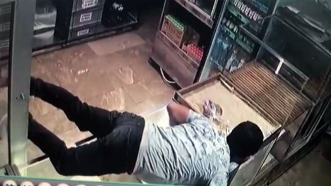 Kayseri'de şüpheli bir kişi, içerisinde 600 TL bulunan sadaka kutusuna güçlükle ulaşarak çaldı, o anlar güvenlik kamerasına yansıdı.
