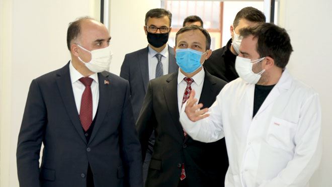Vali Şehmus Günaydın ve Erciyes Üniversitesi (ERÜ) Rektörü Prof. Dr. Mustafa Çalış, ERÜ Aşı Araştırma ve Geliştirme Uygulama ve Araştırma Merkezi’nde incelemelerde bulunarak, ERÜ tarafından Covid-19’a karşı geliştirilen aşı adayı hakkında bilgiler aldılar.