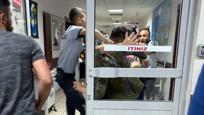 Erciyes Üniversitesi Tıp Fakültesi Çocuk Acil Servisi'nde 2 hasta yakını, kendilerini maske takma konusunda uyaran güvenlik görevlisine saldırdı. Darp edilen güvenlik görevlisi, hastanede tedavi altına alındı.