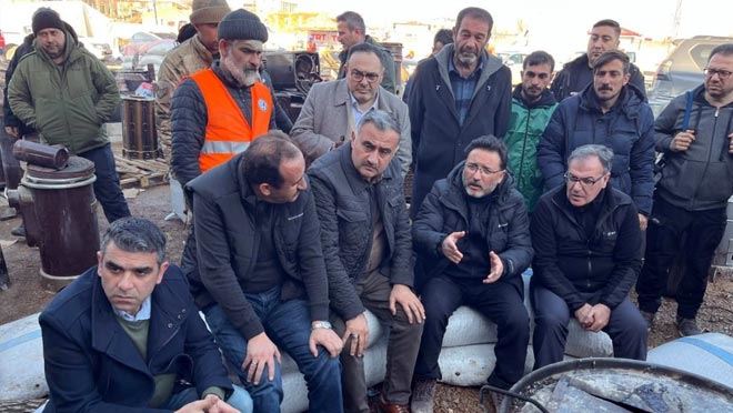 Büyükşehir Belediye Başkanı Dr. Memduh Büyükkılıç, Hacılar ve Develi belediye başkanları ile birlikte deprem bölgesi Göksun’da hizmet verecek iş makinaları ve araçları personeli ile birlikte bölgeye uğurlamasının ardından Göksun’a giden Hacılar Belediye Başkanı Bilal Özdoğan, Develi Belediye Başkanı Mehmet Cabbar Göksun’un Ericek Kasabası’nda ki çalışmaları yerinde inceledi. Belediye başkanları; ilk olarak Kahramanmaraş’ın Göksun İlçesi’nde çalışmaları koordine eden Batman Valisi Ekrem Canalp’ı ziyaret ettiler. Bölgeye gönderilen 30 araç ile 50 personelle hizmette olduklarını belirten başkanlar, buradan depremde ağır hasar gören Ericek kasabasına geçtiler. Vatandaşlara başsağlığı dileyen başkanlar bölgede yapılan çalışmaları incelediler. AFAD’ın kurduğu çadırlarda vatandaşlarla görüşen heyet, bölge halkına başsağlığı diledi. “Elbirliğiyle illerimizi ayağa kaldıracağız” diyen Hacılar Belediye Başkanı Başkan Özdoğan; “Tüm ekiplerimizle halkımızın hizmetinizdeyiz. Depremin ardından ilk olarak arama kurtarma ekibimizle bölgeye destek verdik. Şimdi de görevlendirildiğimiz Göksun’da iş makinalarımız ve araçlarımızla depremin yaralarını sarmak için çalışıyoruz. Devletimiz tüm imkanları ile bölgededir. Bu süreci elbirliği ile atlatacağız” dedi.