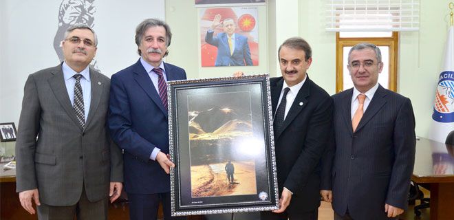 Ziyaret sonunda Başkan Ekici, Rektör Keleştemur`a birinci ulusal Fotoğraf yarışmasında birinci olan fotoğrafı hediye etti.
