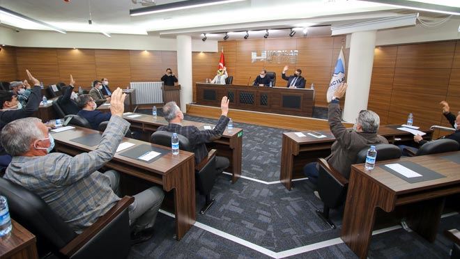 Gündemin ikinci maddesinde mülkiyeti hisse oranında belediyemize ait taşınmazların satışı için encümene yetki verilmesi konusu görüşülerek oy birliğiyle karar verildi.
