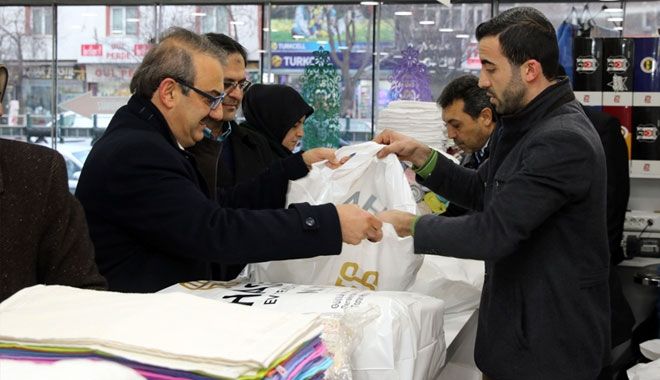 Başkan Ekici ve beraberindekiler, kampanya çerçevesinde dövizini bozduran vatandaşlara yastık hediye eden esnafa, destek ziyaretinde bulundular.