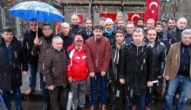 Hak-İş Konfederasyonu ve Hizmet-İş Sendikası üyeleri, 15 askerin şehit olduğu otobüs durağını ziyaret etti.