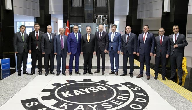 Halkbank Genel Müdürü Osman Arslan ve Şube Müdürlerinden oluşan heyet Kayseri Sanayi Odası (KAYSO) Yönetim Kurulu Başkanı Mehmet Büyüksimitci´yi makamında ziyaret etti.
