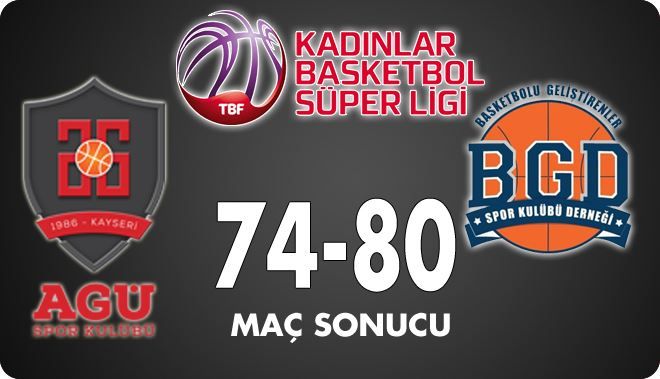 AGÜ Spor, sahasında İstanbul B.G.D ´yi konuk etti. Karşılaşma İstanbul temsilcisinin 80 -74 üstünlüğü ile son buldu. 1.periyodun ilk iki dakikası, kısır geçti. AGÜ Spor, bu dakikadan sonra Pınar ile bulduğu sayılarla öne geçti. Bulduğu sayılarla farkı 7 sayıya çıkaran temsilcimiz, rakibinin molaya gitmesini sağladı. İlk periyot 17-10 AGÜ Spor üstünlüğü ile son buldu. İkinci periyota hızlı başlayan taraf B.G.D oldu. Bulduğu üçlüklerle farkı kapattı. Kıyasıya mücadelenin yaşandığı bu periyot sonunda, B.G.D devre arasına 38-36 önde girdi.
