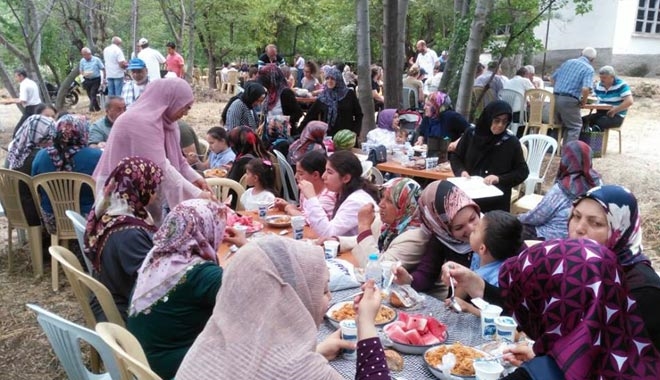 Hayırsever Fatma Aydın´ın katılımcılara çeşitli hediyeler sunarak iştirakleri için teşekkür etmesi yüzleri güldürürken; 2 kazanda pişirilen etli bulgur pilavı ve ayranda katılımcılara ikram edildi.