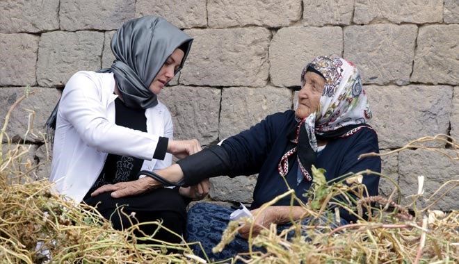 Kayseri´nin Tomarza ilçesinde doktor, diyetisyen, ebe ve çevre sağlığı teknisyeninden oluşan mobil sağlık ekibi, ilçe merkezi dışında kalan mahallelerdeki bahçe, tarla, park, kahvehane ve sokakları dolaşarak sağlık hizmetini vatandaşın ayağına kadar götürüyor.