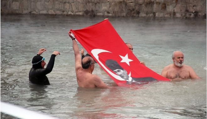 Kayseri´nin Bünyan ilçesinde 7. Kış Yüzme Şenliği düzenlendi. Şenlikte doğa yürüyüşü sonrası katılımcılar, mayolarını giyerek soğuk havaya aldırış etmeden 17 derece sıcaklıktaki suya girdi. Yarışmaya katılan 43 yaşındaki Ali Onar, ?Etkinliği duyduk ve geldik. Önemli olan yarışmak değildi, katılmaktı. Suyun sıcaklığını 18 derece diyorlardı ama daha soğuktu? diye konuştu.