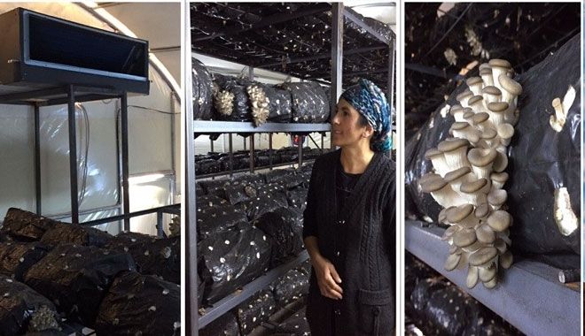 Melek Taşdemir, ürettiği istiridye mantarlarını satarak aile bütçesine büyük katkı sağlıyor.