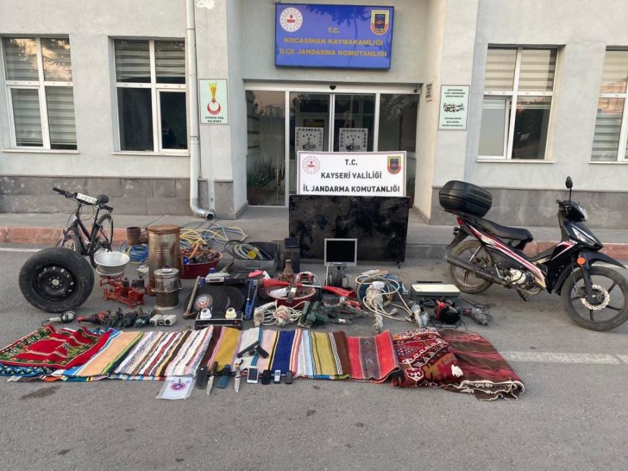 Kayseri İl Jandarma Komutanlığı ekiplerince bir bağ evinden hırsızlık yaptığı tespit edilen 2 şüpheli yakalanırken, çalınan malzemeler sahiplerine teslim edildi.