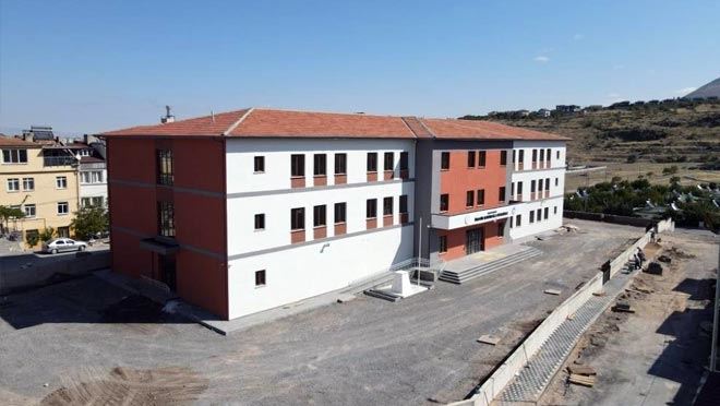 3 yılda ilçeye 16 okul kazandıran Melikgazi Belediyesi, Danışmentgazi Mahallesi’nde yaptığı 20 derslikli İbrahim Kendiroğlu Ortaokulu'nda sona yaklaştı.