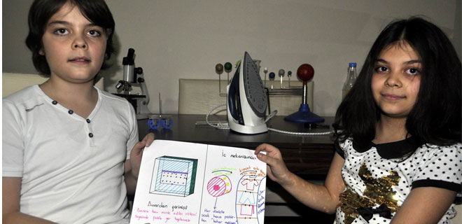Kayseri’de yaşayan 9 yaşındaki Tarık ve Rümeysa Mut ikizler, yaşıtlarından daha farklı işlerle uğraşarak evlerindeki odalarında yeni projeler peşinde koşmaya devam ediyor. Annelerin evde ütü yapmaktan yorulduğu için Otomatik Ütü Projesi geliştirdiklerini söyleyen ikizler, projelerini hayata geçirmeleri için yetkililerden yardım istedi.