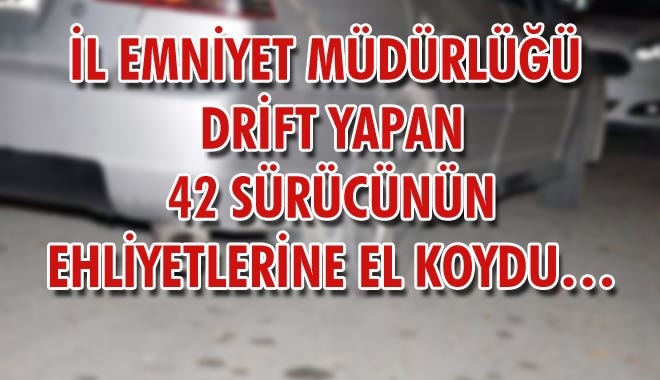 Kayseri Emniyet Müdürlüğünden yapılan açıklamada ?Drift´ yaparak kamunun huzurunu ve sağlığını bozacak şekilde araç kullanan 42 kişinin ehliyetinin alındığı, 12 kişi hakkında işlem yapıldığı ve 42 aracın trafikten men edildiği duyuruldu?